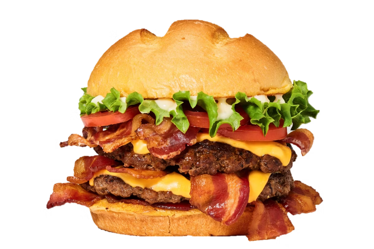 Attention, voici le burger qui va faire trembler l’univers SMAAASH! Un steak ultra croustillant écrasé façon smash, du cheddar fondant, une pluie de bacon grillé à la perfection, des oignons caramélisés, et une sauce fumée maison qui colle des baffes.C’est gras, c’est gourmand, c’est légendaire.Un seul mot : ULTRA.